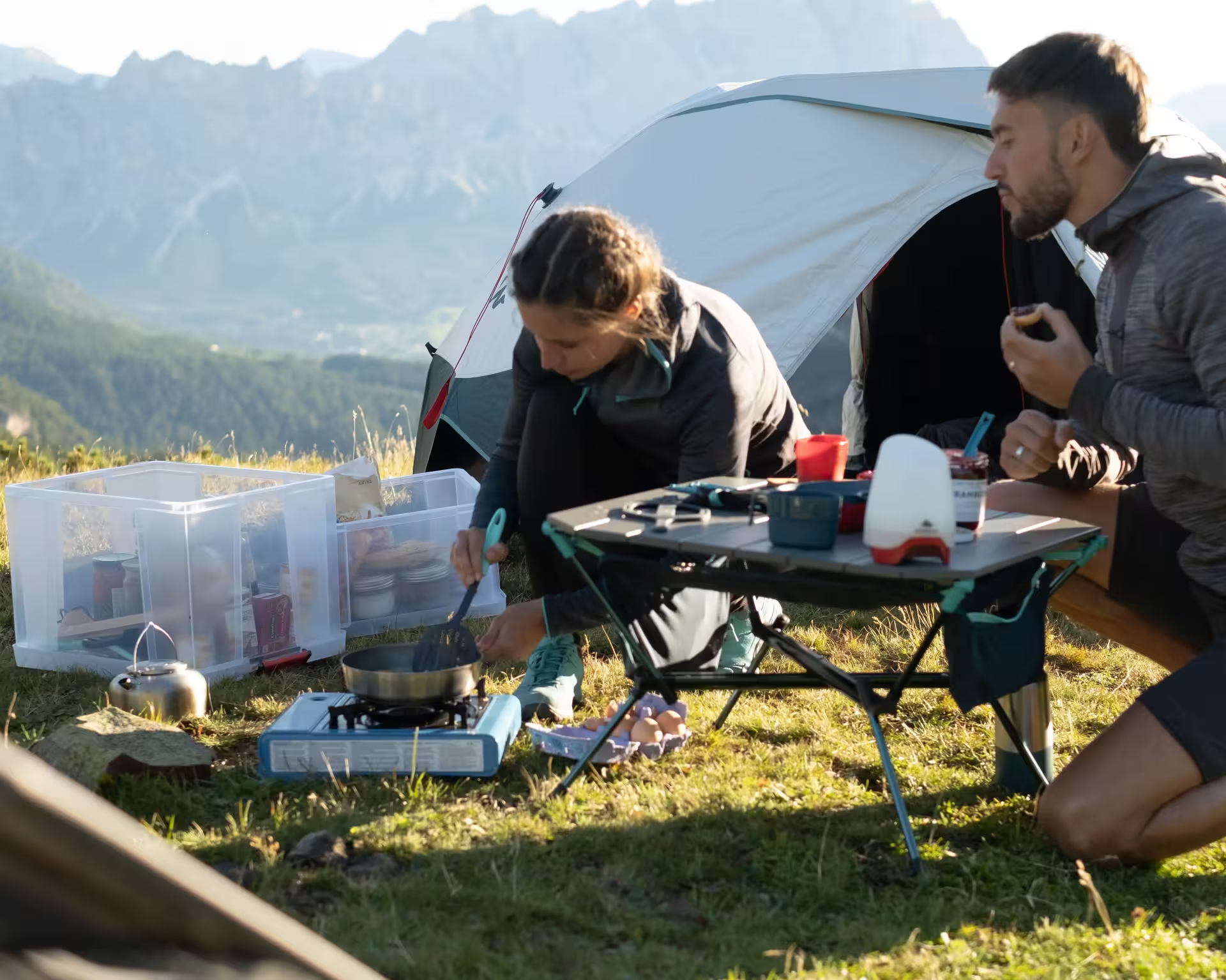 Heb je niet het complete kit van de perfecte kampeerder in je kasten? Geen probleem! JABIRU stelt een kist ter beschikking met alles wat je nodig hebt tijdens je avonturen. Gaskooktoestel, pannen, borden, bestek en glazen, wasbakken, afwasmiddel, koffiezetapparaat, buitenlamp en meer als je wilt!